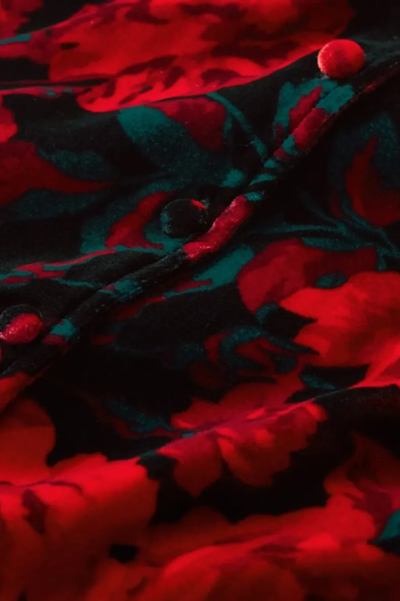 Lavish the hours in our lush and silky velvet blouson, with curved openings at full front placket and button-detailed …