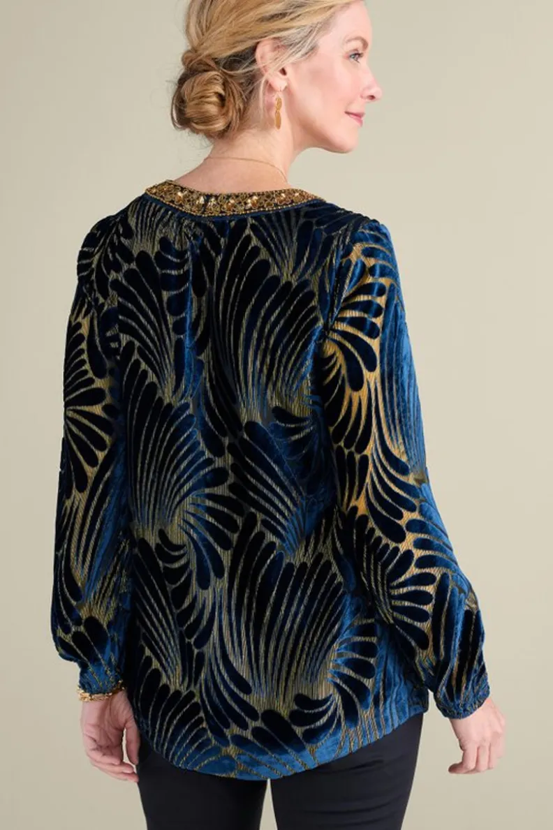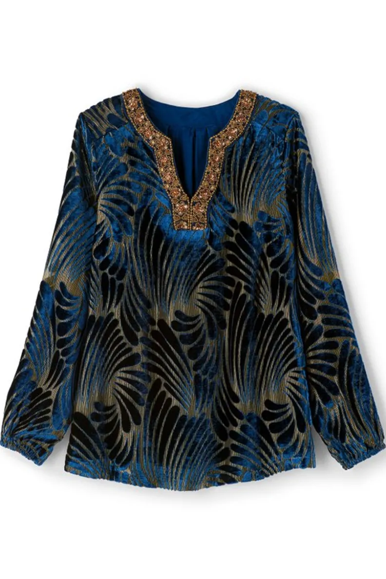 Clearance Soft Surroundings Adrienne Embroidered Velvet Tunic BlueSwirlVelvetBurnout