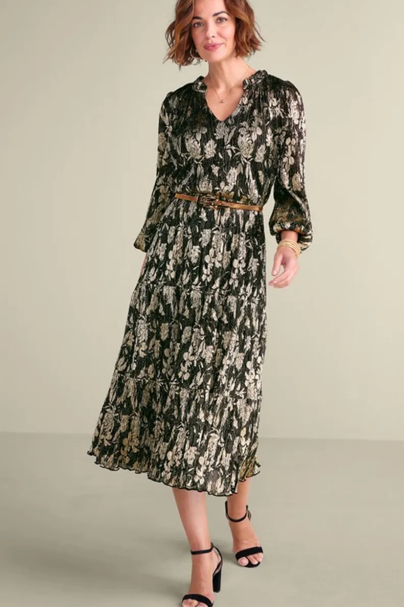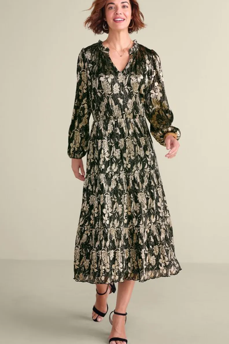Clearance Soft Surroundings Jobelle Shimmer Midi Dress FoilGarden