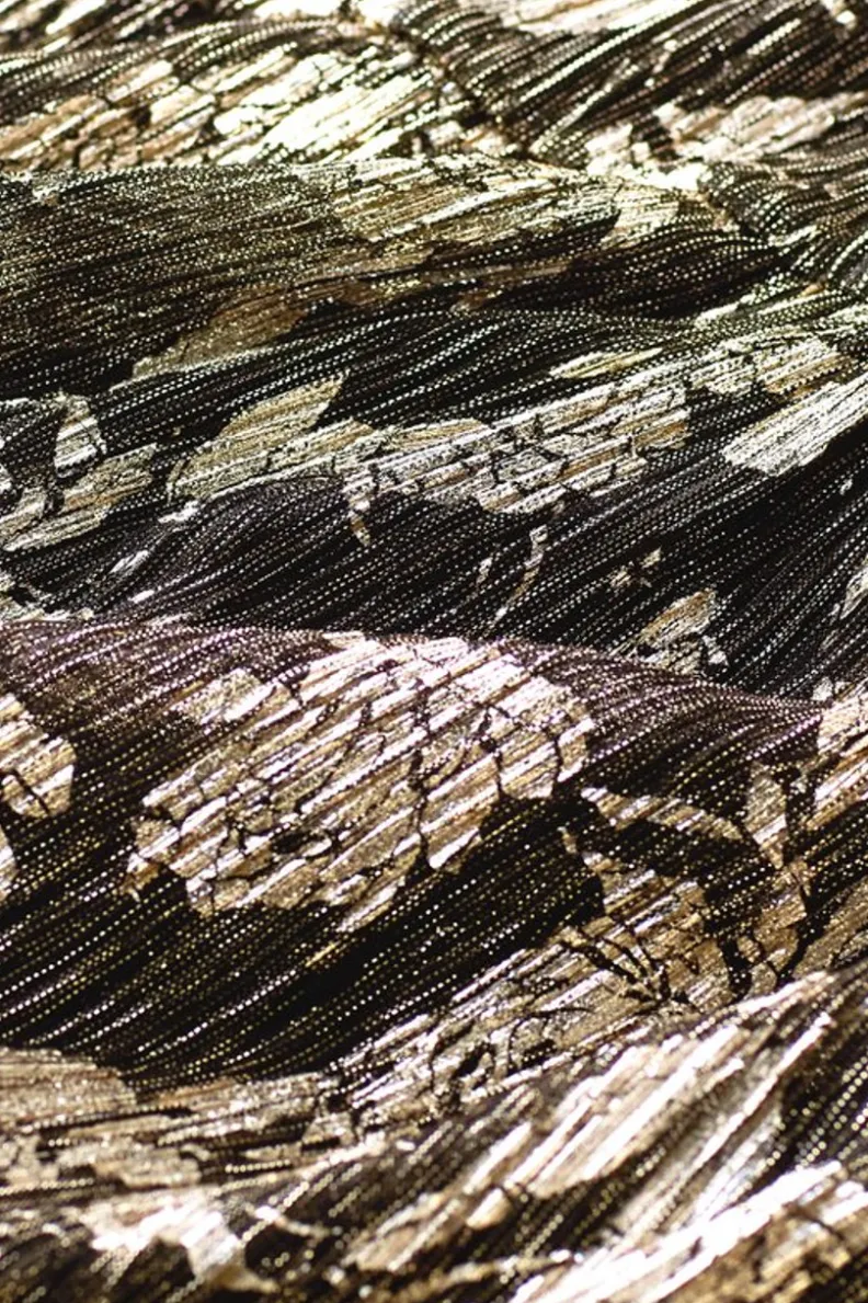 Foil florals float across the crinkled plisse backdrop of this thoughtfully tiered midi. A ruffled collar, elastic waist and blouson sleeves add to the radiance. Further refine with a gilded belt and black boots to be the best dressed holiday party guest. Lined for coverage and comfort.
