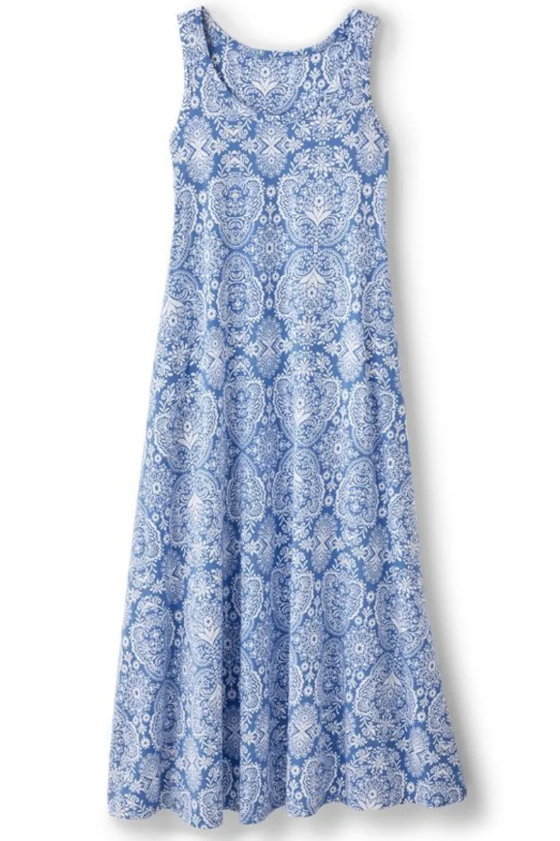 What makes this maxi a favorite, year after year? It starts with the soft and supple jersey you’ll want to live in. Then there’s the flattering, pullover silhouette that gently flares from the bust to the swingy hem for effortless movement. Finished with a timeless scoop neckline and convenient side-seam pockets, the Santiago will be your new go-to.