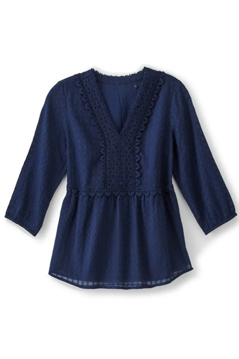 Online Soft Surroundings Elodie Windowpane Gauze Top Navy