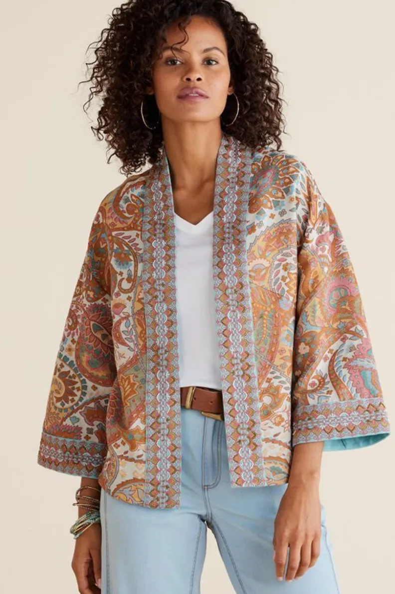 Be bold. Be colorful. And always make an entrance. This show-stopping jacket with vibrant paisleys does just that. So co…